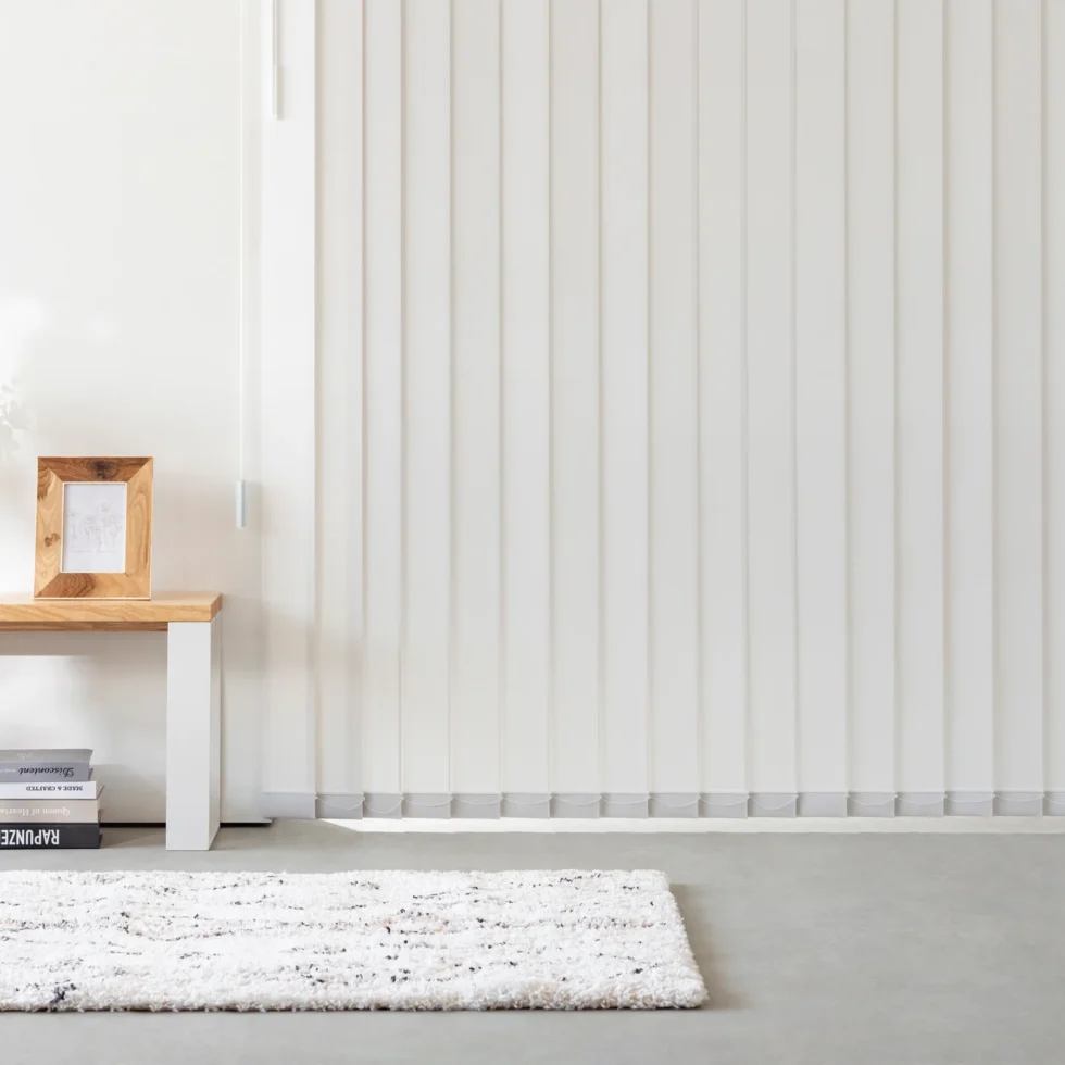 バーチカルブラインドは、縦型に並んだルーバー(羽根)を回転・開閉して光を調整します。