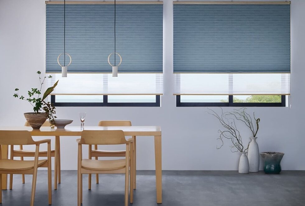 蛇腹のように折りたたまれた生地を上下に動かすプリーツスクリーンは、テイストを選ばずに使えるスタイルです。