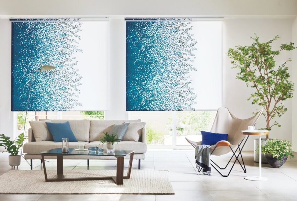 生地を上下に巻き上げて使うロールスクリーンは、シンプルで省スペースなデザインが特徴です。