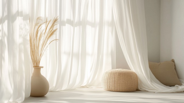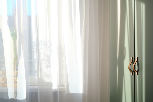 薄手で透け感のあるレースカーテンは、柔らかい自然光を取り入れつつ、外からの視線をやわらかく遮ることができます。
