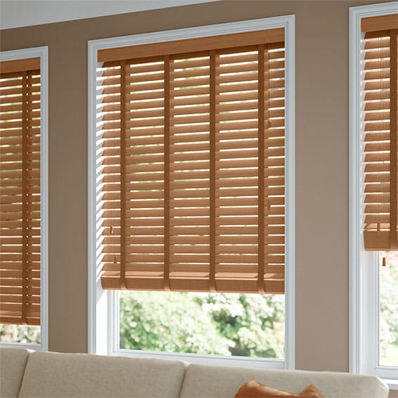 スラット(ブラインドの羽根部分)の角度を調整することで自然光をやわらかく取り込みつつ、外からの視線もコントロールできます。木目のあたたかみが床材や家具と調和し、ナチュラルで洗練された印象に。